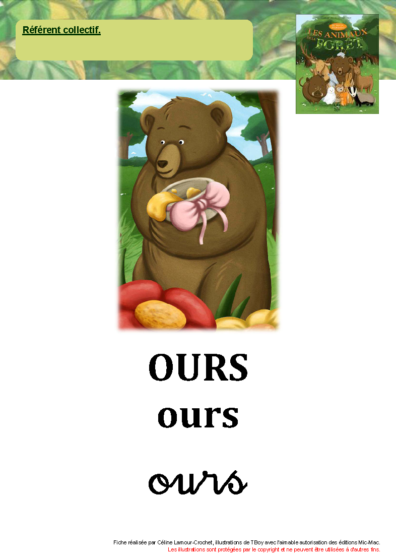 référents collectifs : blaireau - cerf - chevreuil - chouette - écureuil - hibou - lièvre - loir - loup - ours - sanglier légender la "photo de famille" des animaux de la